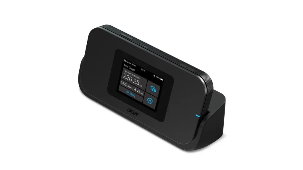 If you’re a digital nomad or a frequent traveler, the Acer Connect M4D 5G Mobile Wi-Fi might be your new best friend. This compact 5G hotspot supports up to 16 devices and boasts a 15-hour battery life plenty for a full day of remote work from a cafe or a long commute. The coolest part? It comes with a docking station that turns it into a fixed router with a LAN port. Plus, with support for eSIM and Virtual SIM, switching providers while hopping countries is as easy as a few taps on the Acer Connect app.