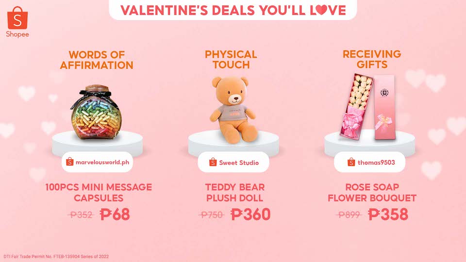 Make the season of love even more special and shop at Shopee’s Valentine’s Deals You’ll Love until February 14 for deals and discounts up to 90% off on perfect date needs and intimate gifts for your loved one. For more info, visit: https://shopee.ph/m/valentines-deals-youll-love