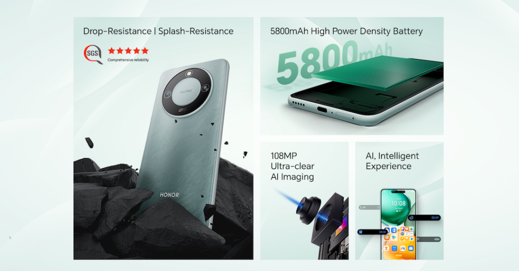 What makes this phone so special? Well, it inherits the same incredible durability as the HONOR X9c 5G. We’re talking SGS 5-Star Comprehensive Reliability – meaning it can survive drops, scratches, and even a brief dip in water. It’s built with the same robust Polycarbonate Polymethyl Methacrylate back cover, so you don’t have to worry about everyday wear and tear. Plus, it can handle extreme temperatures, from freezing cold to scorching heat.