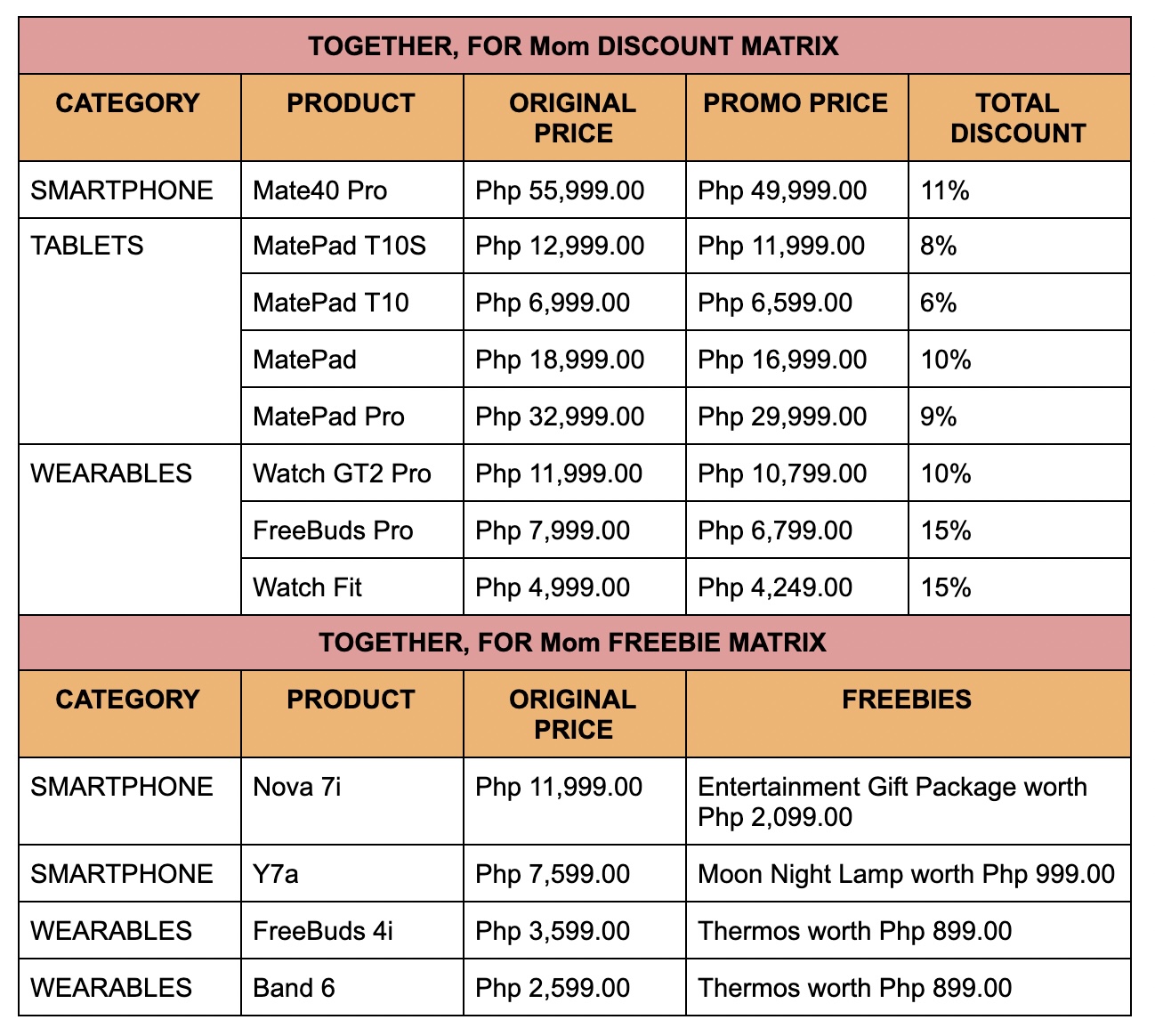 Customers may visit the Huawei Store and the official Huawei Flagship Stores on Lazada and Shopee to bag their desired Huawei device with the best ‘Together, for Mom’ discount.