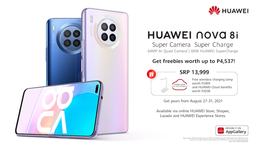 The HUAWEI nova 8 and 8i are officially available starting today, August 27, 2021 via online Huawei Store, Lazada, Shopee, or through Huawei Experience Stores nationwide and consumers can get exclusive freebies until August 31, 2021, while supplies last.