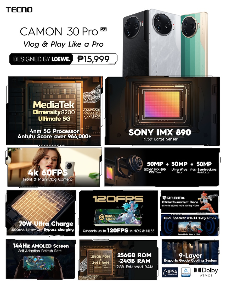 The CAMON 30 Pro 5G (12GB+256GB) retails for PhP15,999 and will be available at TECNO Mobile PH stores on TikTok Shop, Lazada, Shopee, and partner retail stores nationwide. Catch the first sale on June 28th from 8PM to 12MN at the Unbox Diaries TikTok live sale for only PhP12,499 (limited stocks).