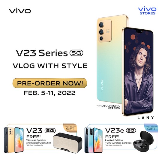 The V23 Series is also available for pre-order in vivo concept stores and kiosks nationwide from February 5 to 11, 2022. Customers must make sure to pay a P500 down payment to get a voucher that ensures they can claim their phone starting February 12, 2022. Pre-ordered units also come with limited freebies: a Wireless Speaker and Digital Clock 2in1 for the V23 5G and TWS Wireless Earbuds for the V23e.