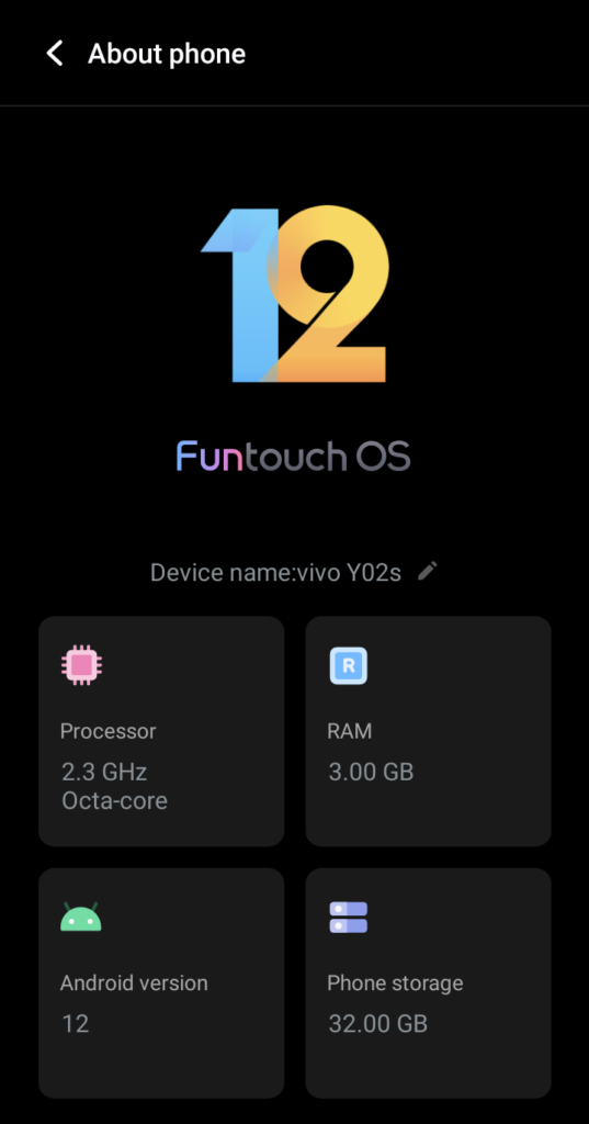 vivo Y02s comes with the latest software Funtouch OS 12 and Android 12 that packs a lot of features including the Multi-Turbo 5.5 and Ultra Game Mode for gaming as well as EasyShare and iManager for phone management.
