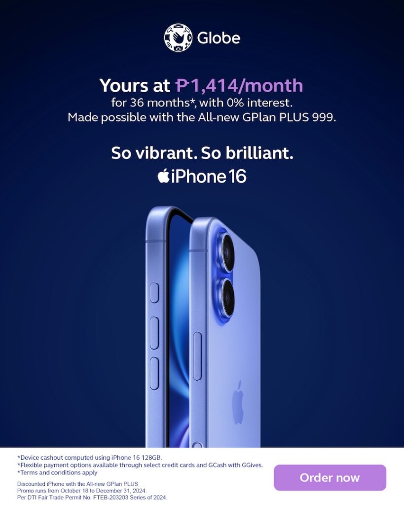 “We want to make the latest technology accessible to Filipinos through convenient and value-driven options,” said Eric Tanbauco, Globe Vice President and Head of Consumer Mobile Business. “With the launch of the iPhone 16, we’re excited to provide our customers unmatched affordability, premium benefits, and exclusive perks that enhance their digital lifestyle.”