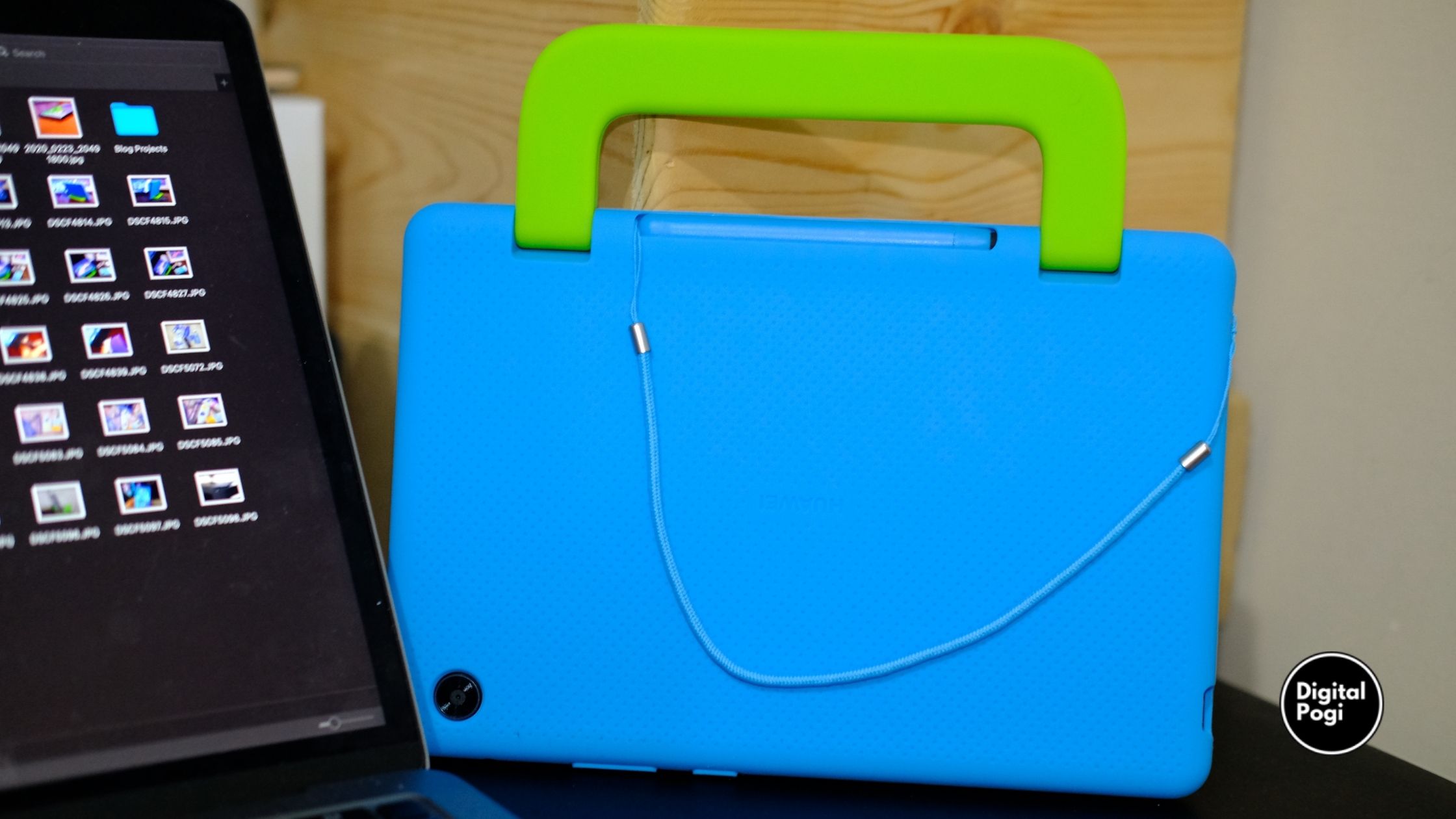 Speaking of kids, HUAWE made sure that the tablet is secured and protected with an anti-shock silicone case wrapping around the whole tablet with a built-in handle that doubles as a stand. The case also has a pen that secures at the back of the tablet so that your kids won’t lose them. Another cool fact is that the case is made of edible safe silicone, so if your kids love to nibble on things, it’s safe. But of course, don’t let them do it. It’s still silicone.
