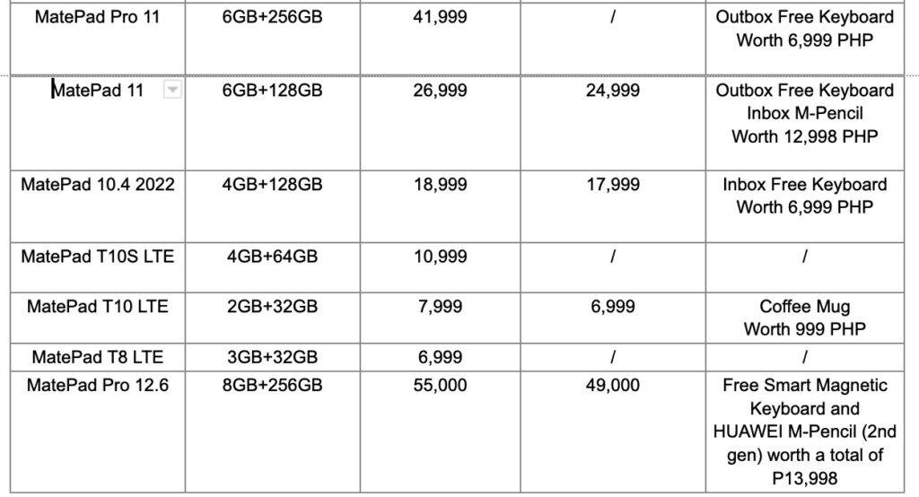 - HUAWEI MatePad T10 LTE that’s available for only P6,999 and comes with a freebie valued at P999.