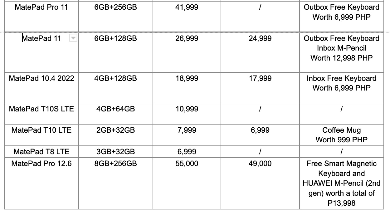 - HUAWEI MatePad 10.4 just had a drop in price from P18,999 to P17,999 and comes with a free keyboard worth P6,999. It