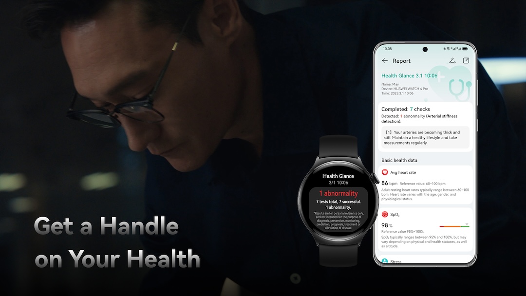 It is the only smartwatch equipped with a high-performance ECG sensor module, keeping track of cardiac rhythm, atrial fibrillation, and premature atrial contractions, providing users with timely alerts of major heart health-related risks. Additionally, the watch features arterial stiffness detection, enabling pro-level screening for arteriosclerosis and offering tips to improve cardiovascular health.