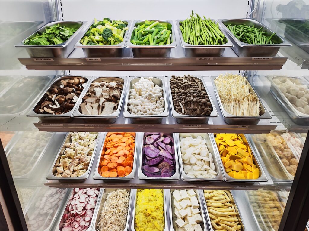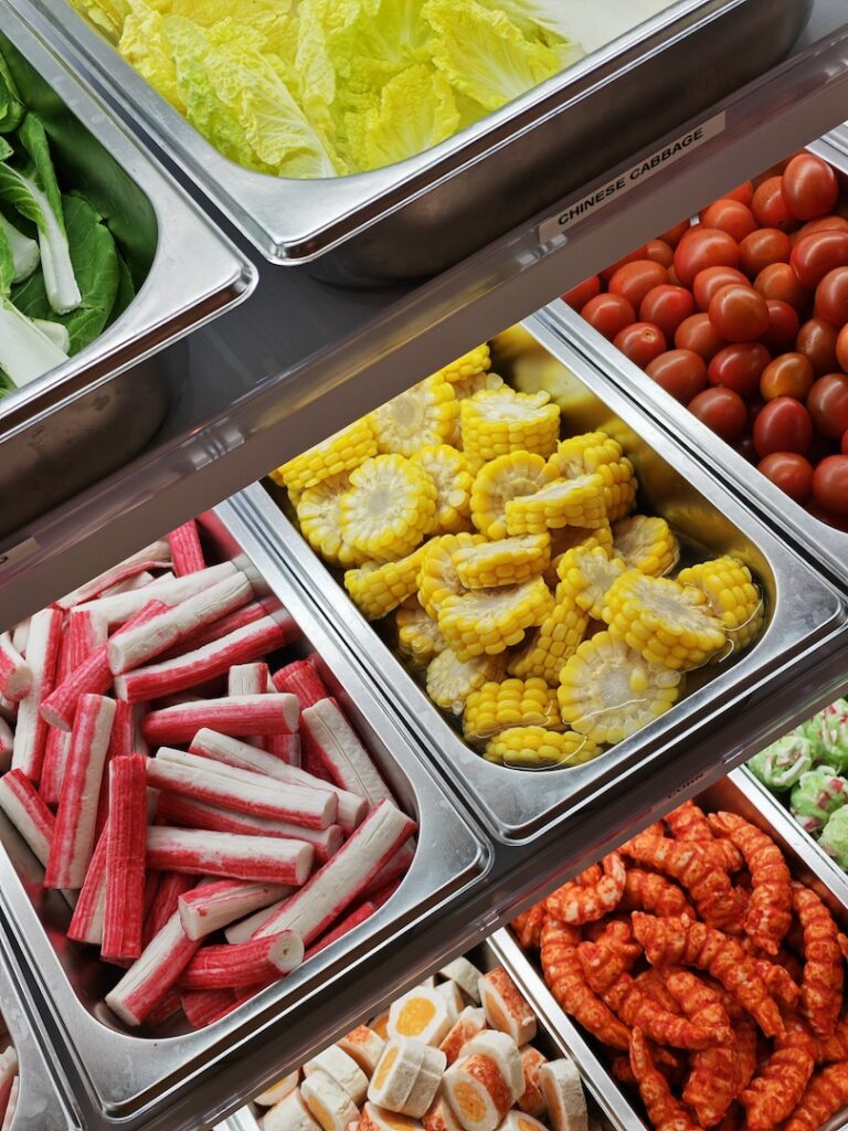 Diners simply grab a basket and proceed to choose from a dazzling array of ingredients. The selection is vast and luxurious: