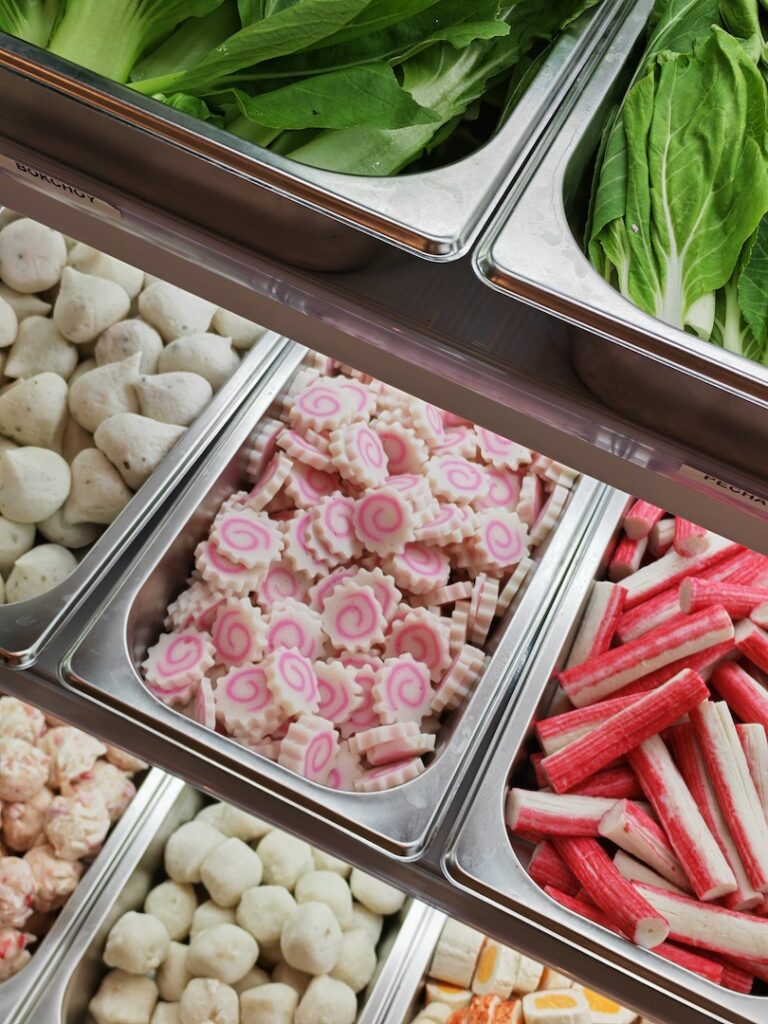 Then comes the real artistry, the selection of ingredients. Instead of just picking from a menu, you’re building your own edible canvas. Each paper-thin slice of meat, each vibrant green vegetable, and each flavorful fish ball is a deliberate choice, waiting to be cooked in your chosen broth. Each pot is a unique mix of flavors that reflects each ones taste and personality.