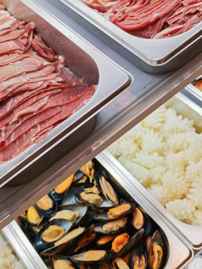 - Meats: Including premium chunk flap slices, marbled beef shank, tendons, and beef belly.
