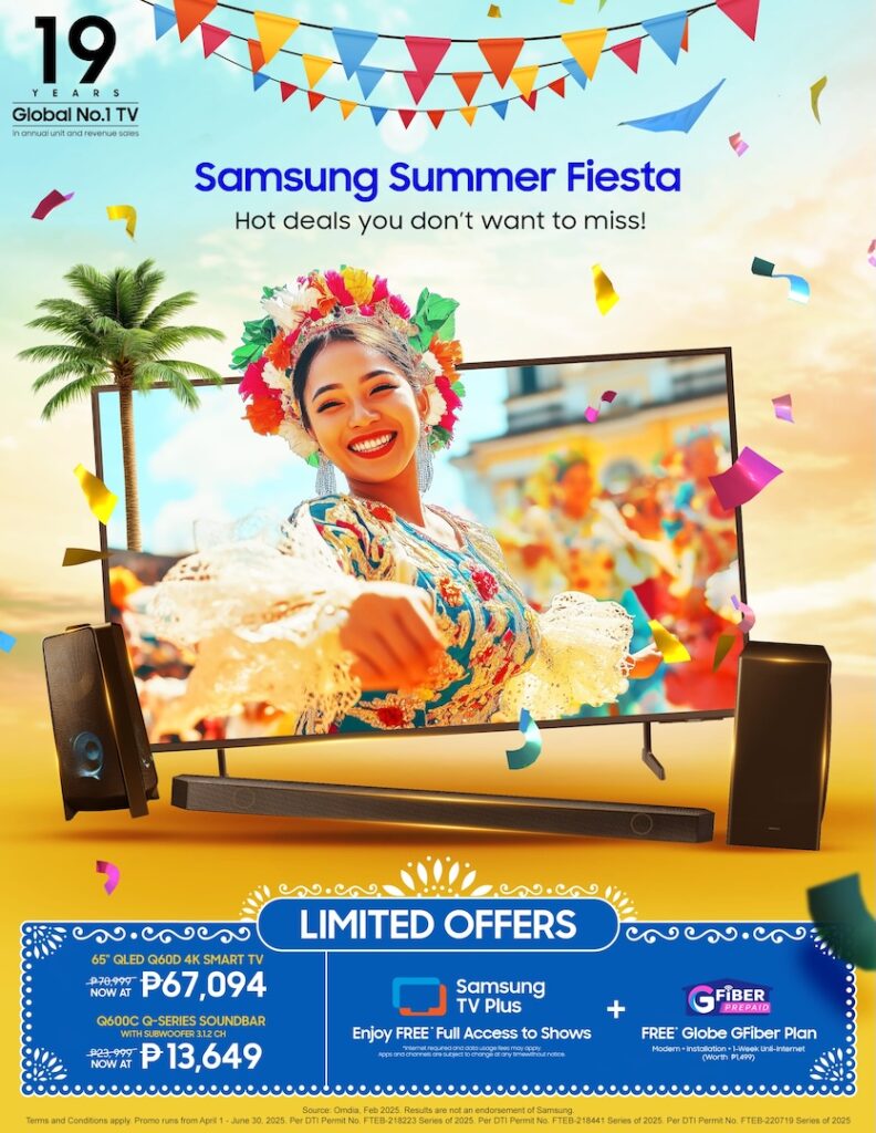 Samsung is giving us the chance to level up our home entertainment with exclusive summer deals on their QLED and Crystal UHD 4K Smart TVs and soundbars. And the savings are significant – you can save up to Php 89,500! Plus, they’re throwing in some premium freebies, like a GFiber Prepaid 1-Week Unli Internet subscription worth Php 1,499.